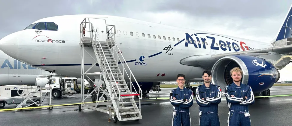 Début octobre, Arnaud, Alfred et Teys, tous les trois apprentis-ingénieurs ENSTA Bretagne ont vécu une expérience passionnante à bord de l'Airbus A310 Zéro G. Pendant 2 semaines, il se sont rendus sur le site de Novespace pour préparer les essais puis tester leur robot DREAM lors de vols paraboliques. Découvrez en vidéo leurs témoignages.
