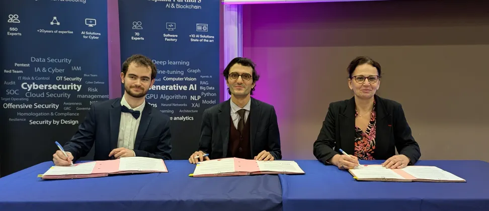 Following these presentations, and after a discussion with the students about the many career opportunities offered by HeadMind Partners, the official signing of the mentorship agreement took place between the President of the BdE, Antoine Métayer, Estelle Iacona, and Billal Chouli.