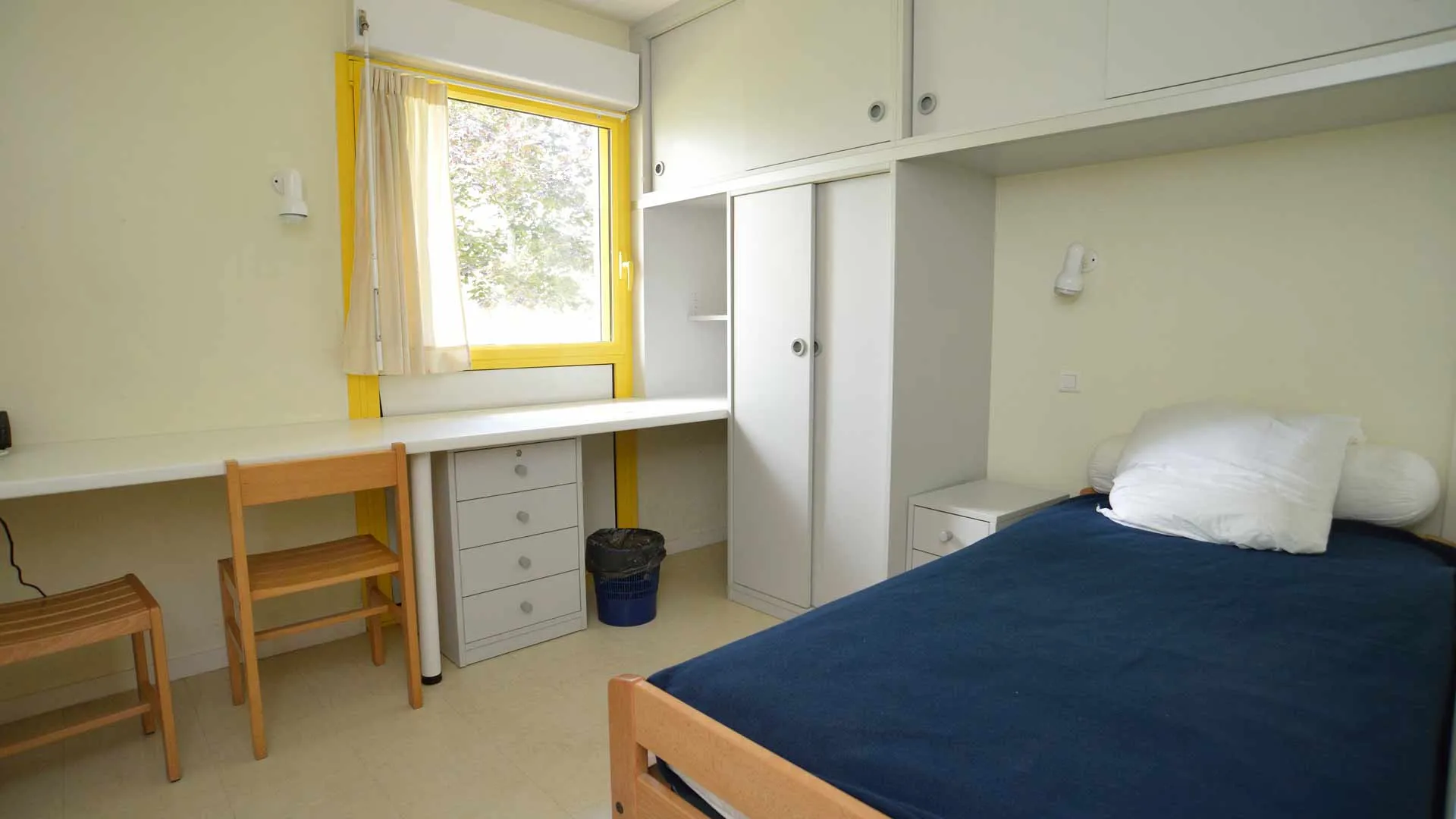 Le format du lit est de 90 x 190 pour les chambres et 90 x 200 pour les studios. L’équipement de la literie comprend 1 oreiller, 1 couverture et 1 alèse. Il appartient au locataire de prévoir le linge de lit et une couette en supplément si besoin. Une location à l’année d’un kit de draps peut être proposée au tarif de 30€.