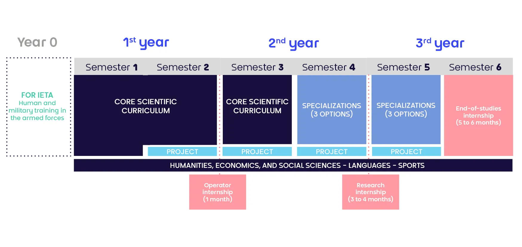 The engineering program lasts three years. It is the same for both civilian students and IETA military students. Discover the specific features of the IETA program